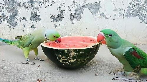 西瓜,这个夏日里的清凉使者,不仅口感鲜美,而且营养价值极高。西瓜中含有丰富的水分、维生素、矿物质和氨基酸,对于调节体温、补充能量、促进消化都有很好的作用。这么好的东西,鹦鹉们当然不会放过!